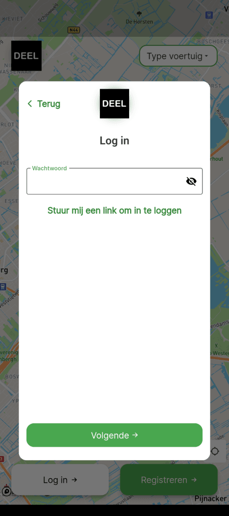 Je bent al geregisteerd als gebruiker. Kies voor ‘Log in’ na het openen van de app en vul je e-mailadres in. Gebruik hetzelfde e-mailadres dat je gebruikt in de OnzeAuto-app. Indien hier om wordt gevraagd, maak dan geen gebruik van een wachtwoord maar van een e-mail link.